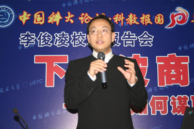 图1:2007年,李俊凌博士登上中国科大论坛